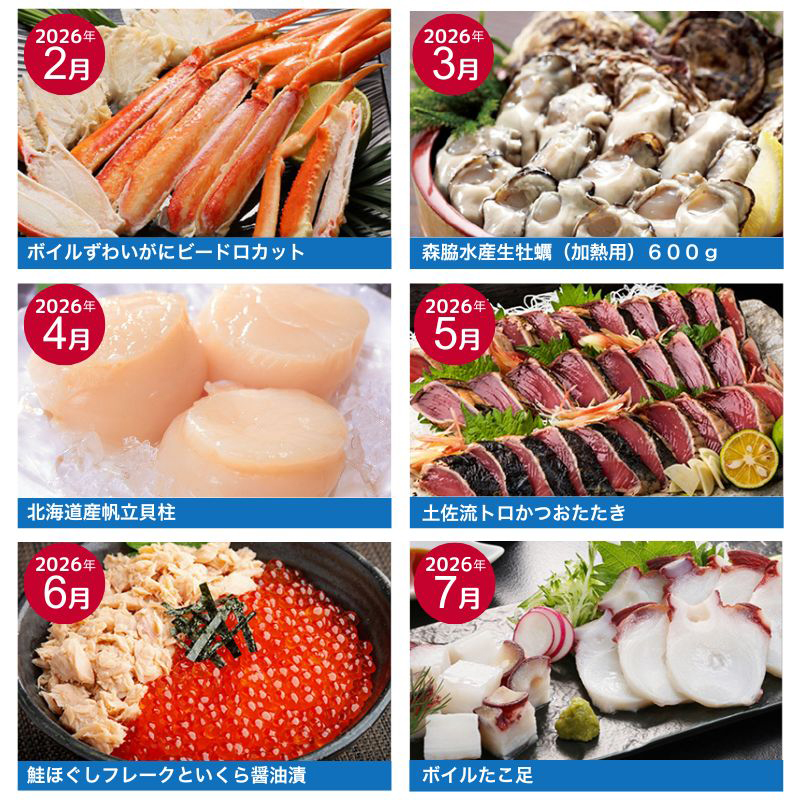 月に1度、ご自宅で様々な海鮮をお召し上がりください。