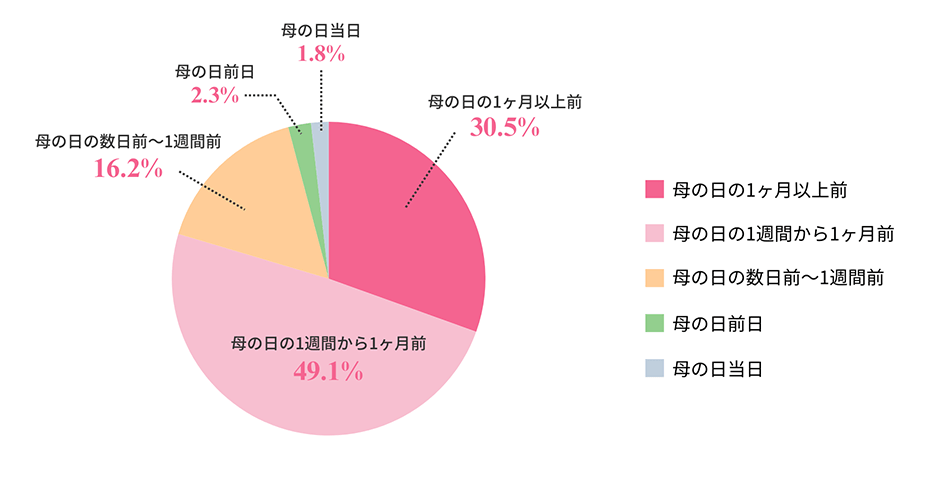 赤やピンクが定番ですが、花言葉に合わせて色を選んだり、鉢やラッピングとの雰囲気で選ぶのもおすすめです。きれいなカーネーションでお母さんを笑顔にしましょう。
