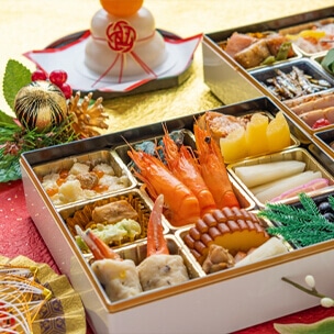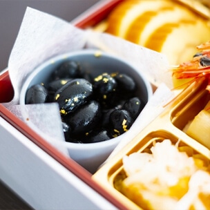 美しい重箱に彩り豊かな料理が詰められた、見た目にも華やかなおせち。段ごとに異なる料理が楽しめ、お正月の食卓を一層特別なものにします。人数や好みに合わせて、お気に入りの一品をお選びいただけます。
