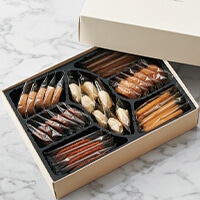 素材を丹念に吟味しひとつひとつ丁寧に造り上げた漬魚・焼魚の進物詰合せです。合成保存料・合成着色料・化学調味料を使わずに、和のテイストを大切にした伝統の技術を提供しております。 -