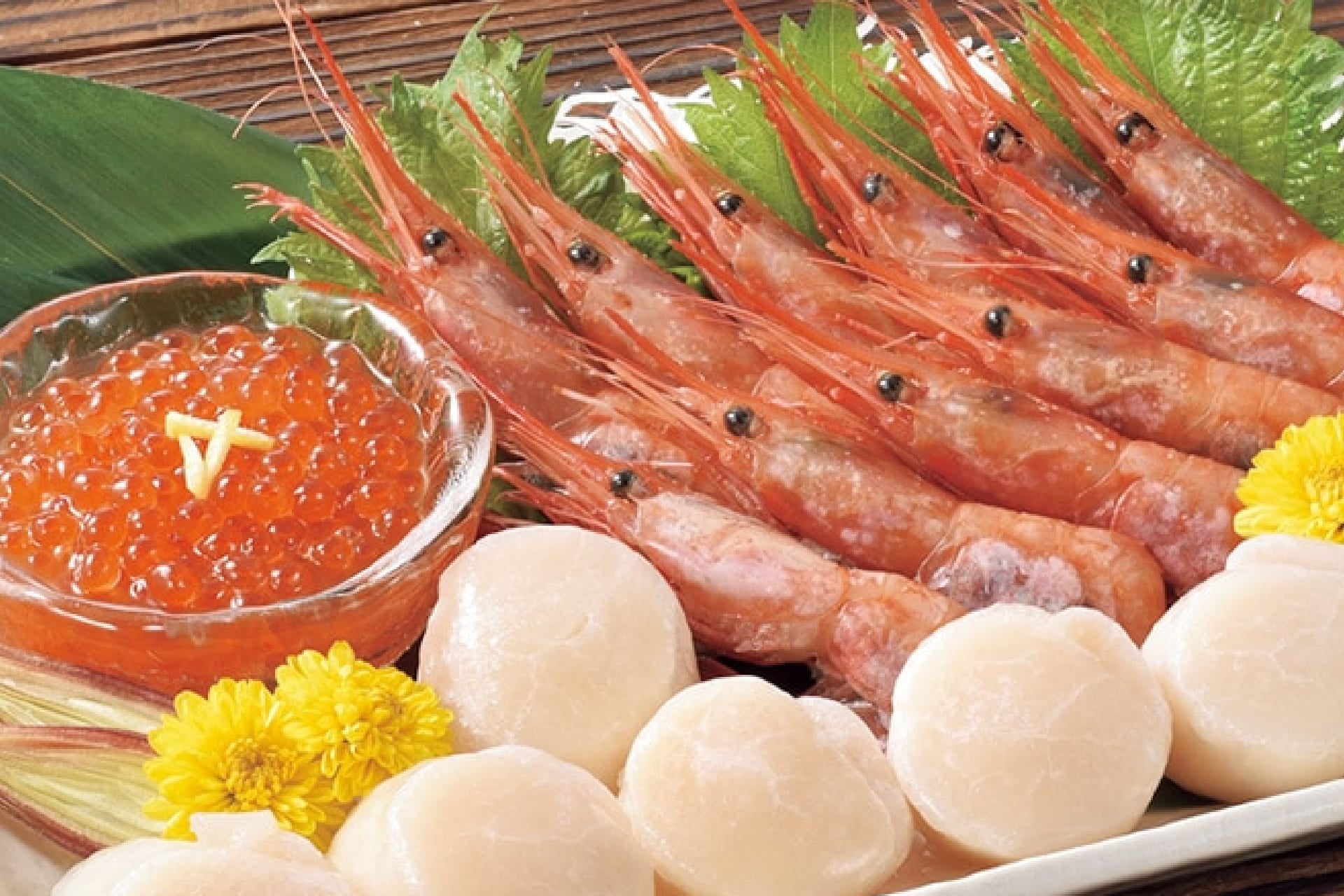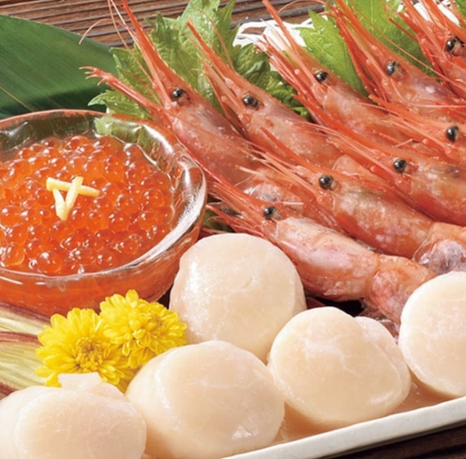 お刺身で楽しめる甘えび、甘さが自慢のほたてなど。海鮮三昧の贅沢セットです。ご自宅で海鮮丼や盛り合わせにしてお楽しみください。