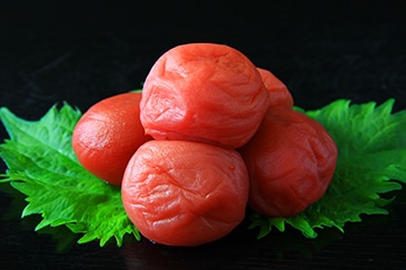梅干しは、おせちだけでなく家庭でも頻繁に食される代表的な日本食です。一般的なシソを加えた酸っぱくて塩辛い梅干しの他に、昆布の味を効かせたものや、はちみつ漬けにして金粉を添えたものなど種類に幅があります。