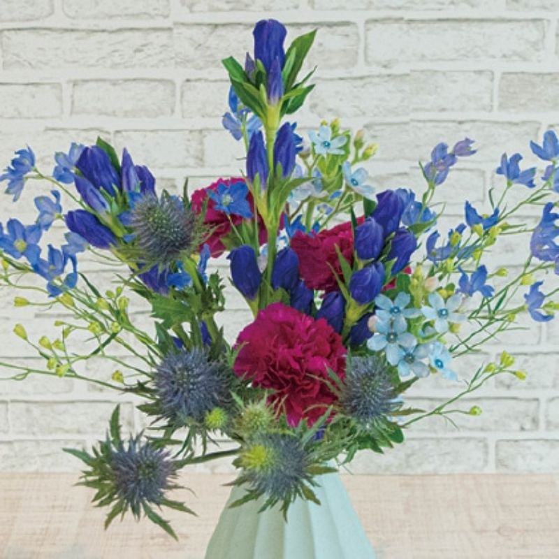 ●商品内容/サイズ(約)=長さ40cm 花材=リンドウ、デルフィニウムほか
