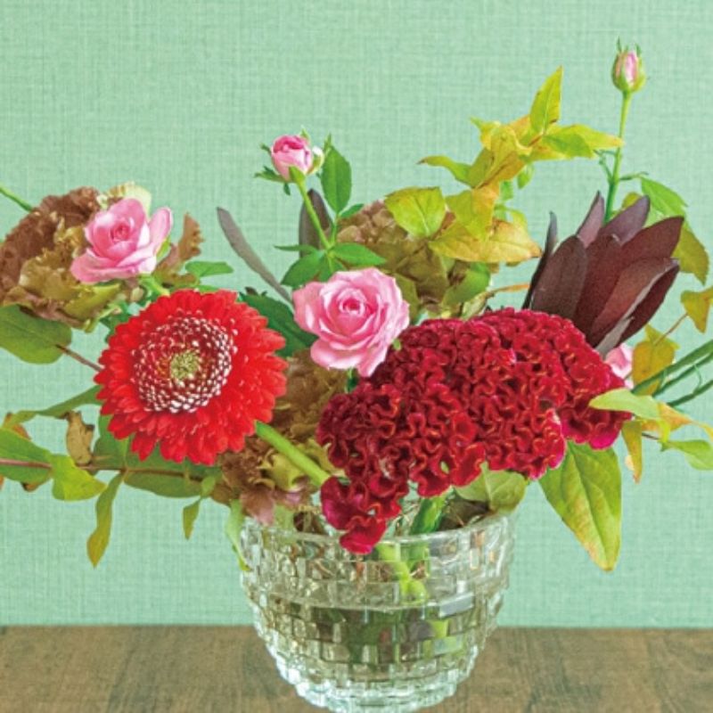 ●商品内容/サイズ(約)=長さ40cm 花材=ケイトウ、スプレーマムほか