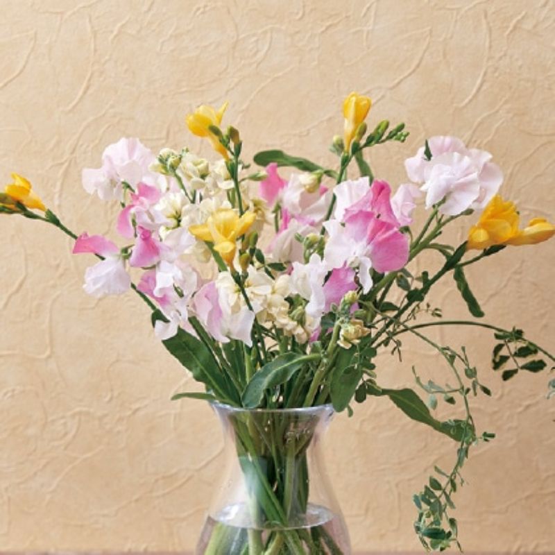 ●商品内容/サイズ(約)=長さ40cm 花材=フリージア、スイートピーほか