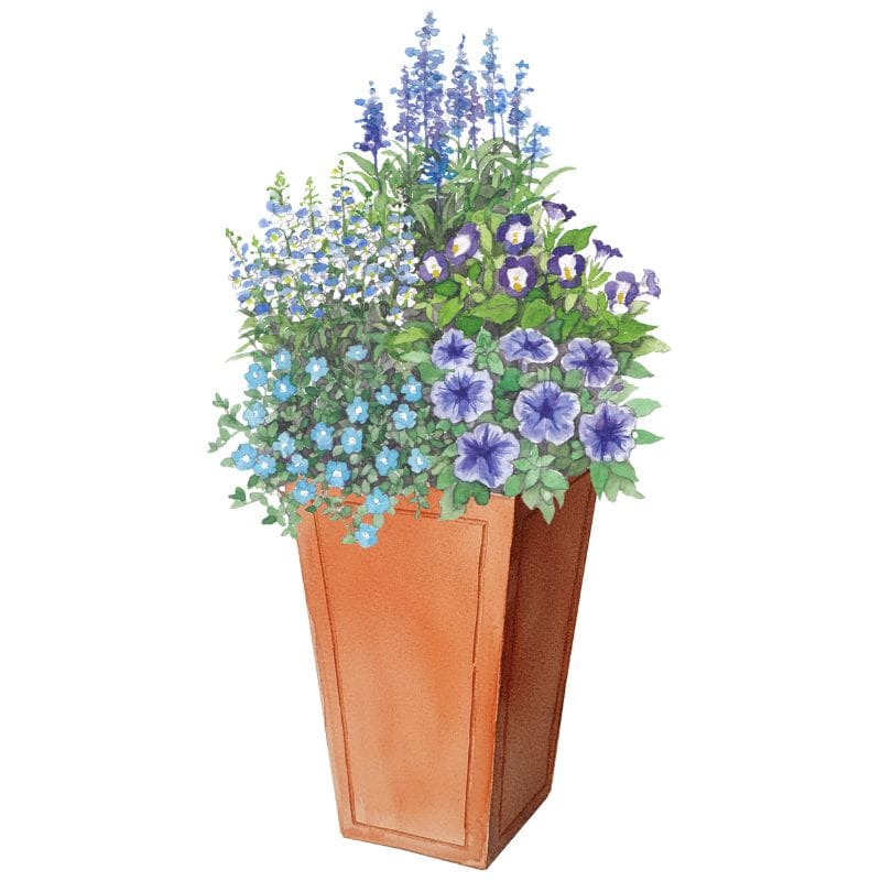 ●商品内容/サイズ(約)=高さ50cm 鉢/直径19cm 花材=ブルーサルビア、アンゲロニア、トレニア、エボルブルス、ペチュニア