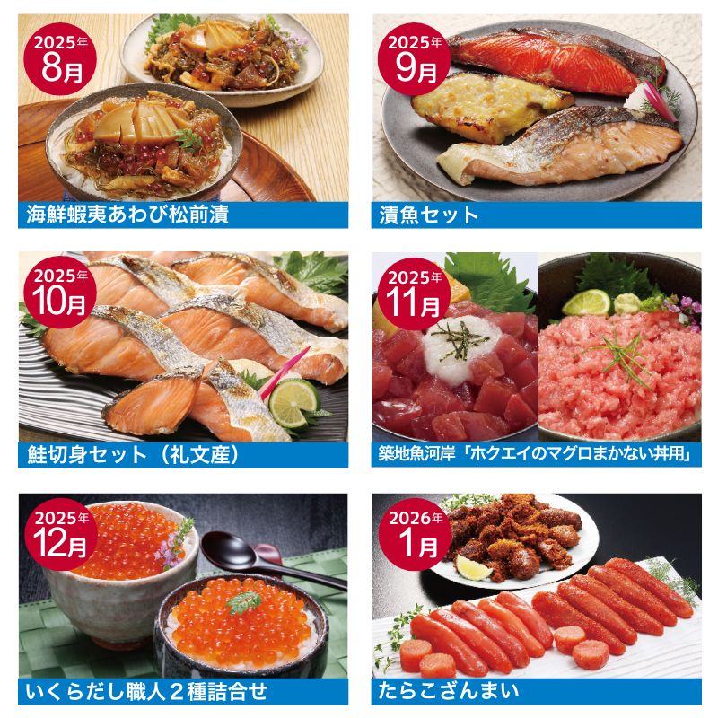 月に1度、ご自宅で様々な海鮮をお召し上がりください。
