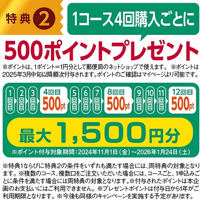 ご注文時期によっては12回分の商品提供がなく終了する場合がございます。