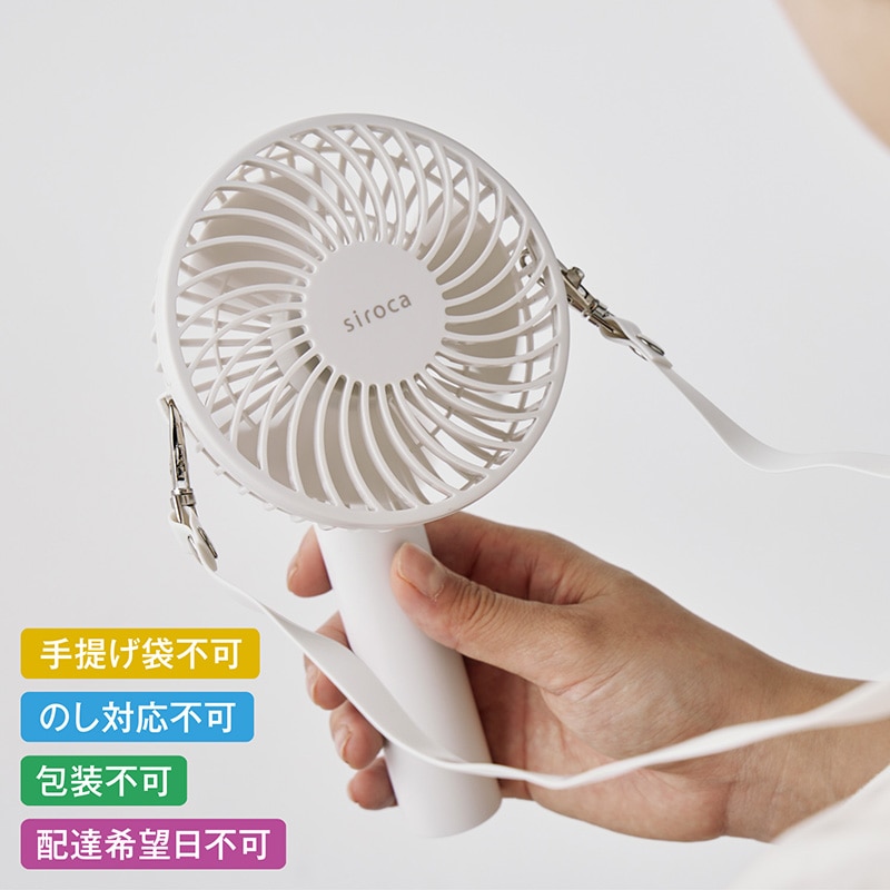 ●USBケーブル・首かけストラップ付。風量調節4段階。充電時間は約3.5時間。使用時間は最大約9.5時間。1年保証書付(SF-H631)。