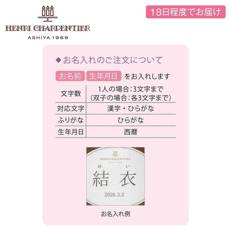 ●お名入れは外字等の使用できない漢字の場合、常用漢字で作成する場合がございます。あらかじめご了承ください。