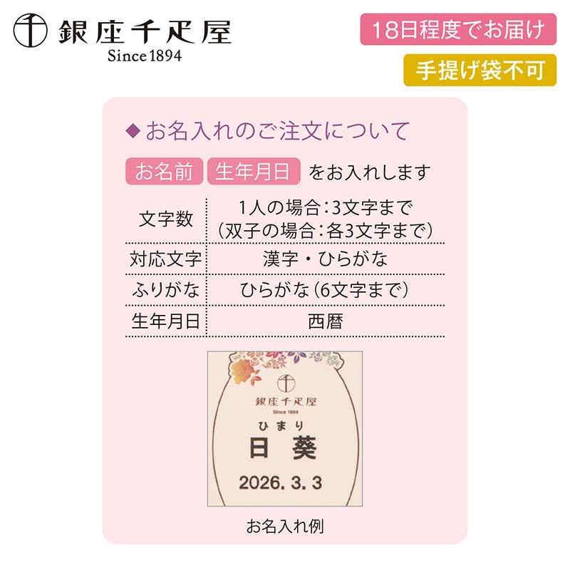●お名入れは外字等の使用できない漢字の場合、常用漢字で作成する場合がございます。あらかじめご了承ください。