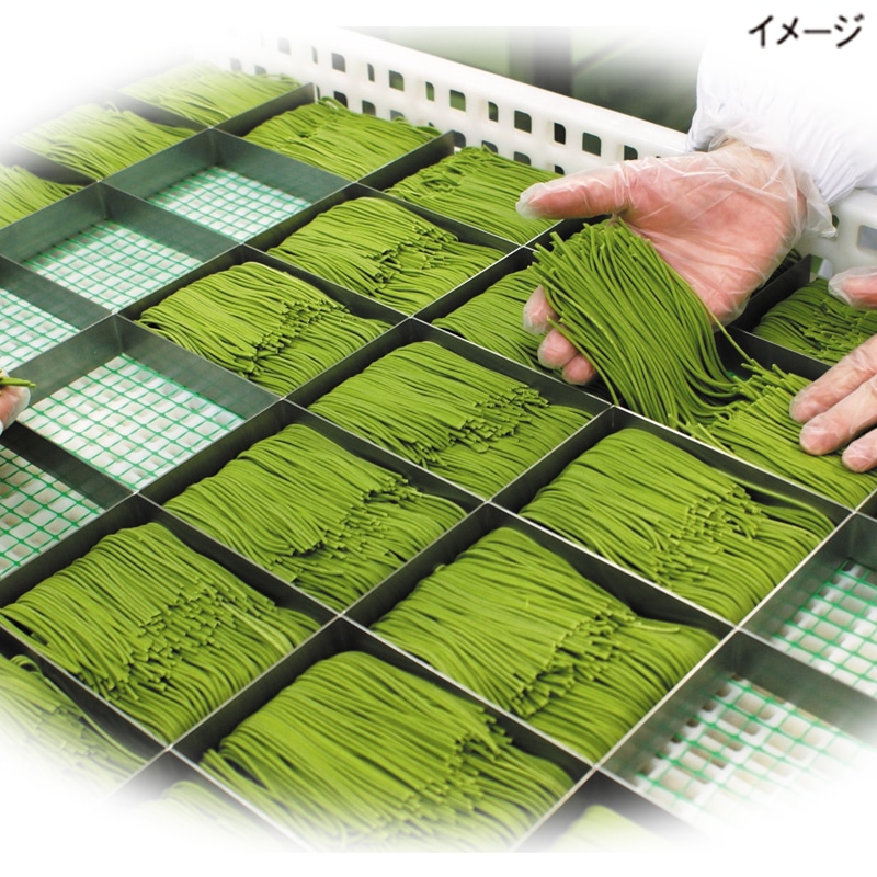 静岡県産抹茶とやまいもを用い、じっくり乾燥させた乾麺は抹茶の香りとコシの強さが特長です。