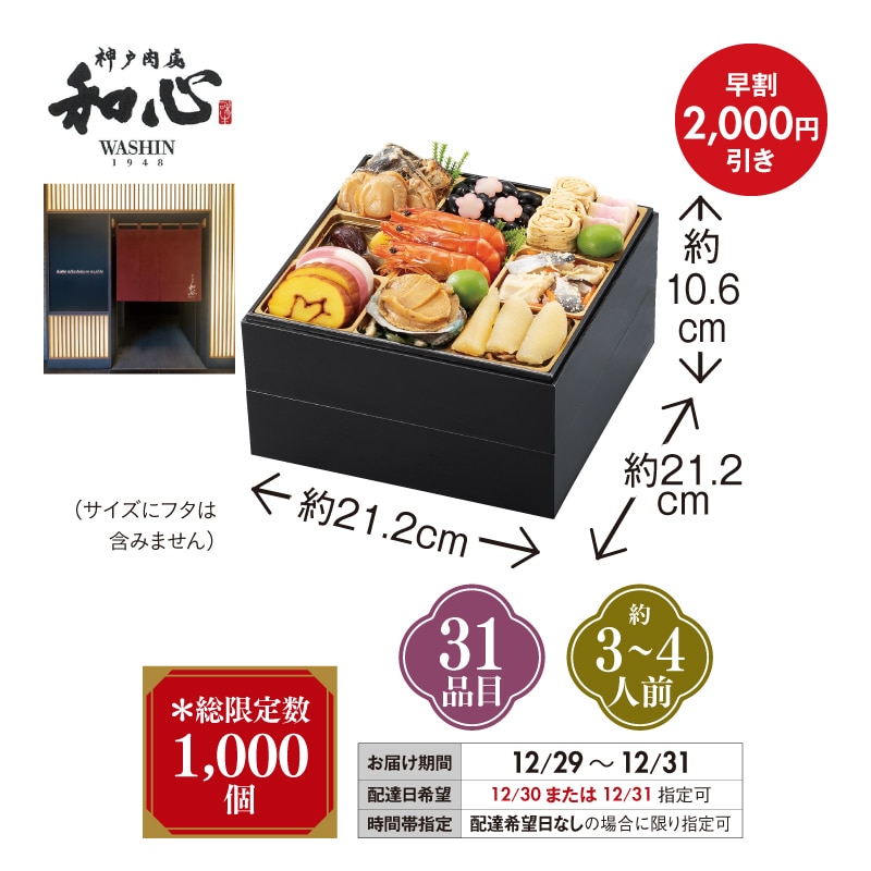 <おせち>【早割】神戸肉處(こうべにくどころ) 和心(わしん)監修 おせち料理二段重