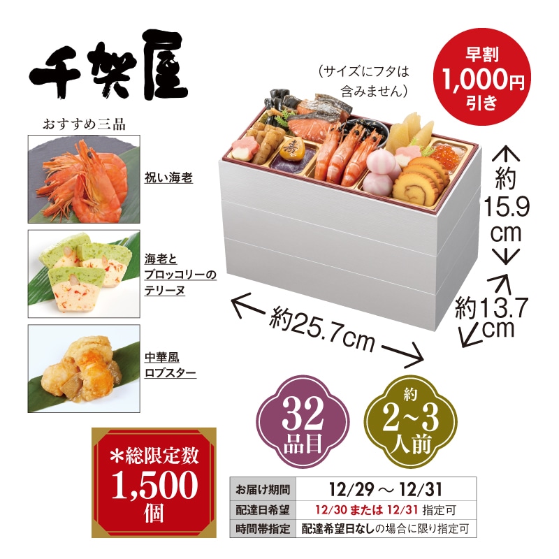 <おせち>【早割】千賀屋謹製 迎春おせち料理 「華千歳」和洋中三段重