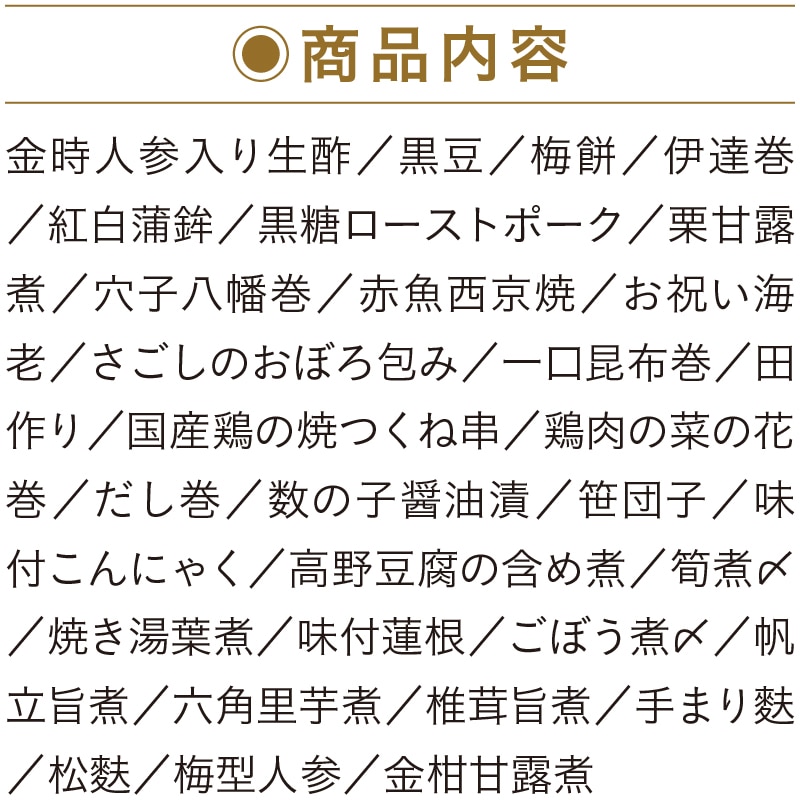 ●商品内容/31品目、重箱(約21.6×5.5cm)(紙製)