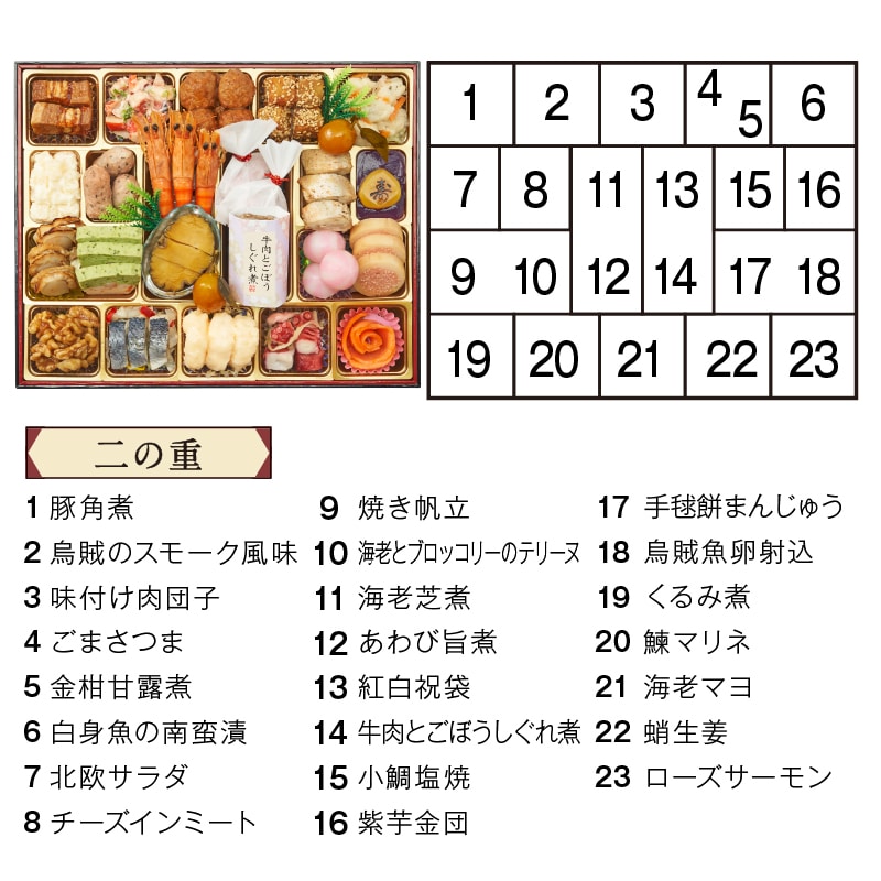 ※作りたての美味しさをそのまま冷凍し、チルドゆうパックでお届けいたします(重箱に盛付け済)。