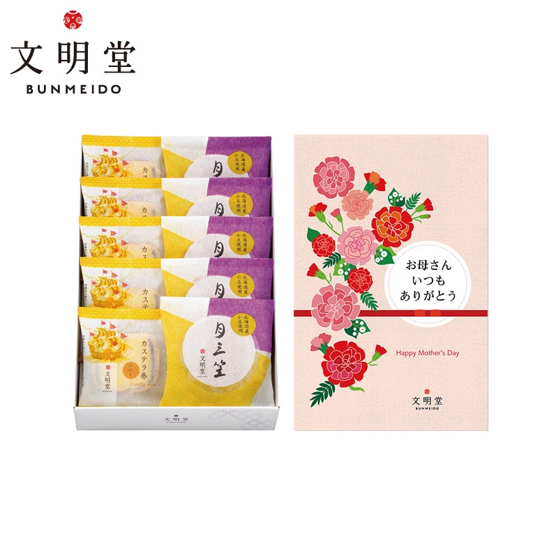<母の日><文明堂東京>月三笠・カステラ巻詰合せ10個