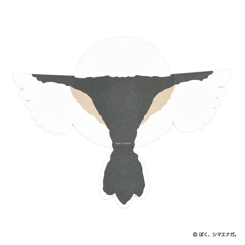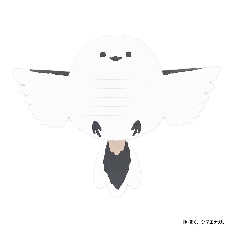 便箋が羽を広げたシマエナガの形になっていて、お腹に本文を書けるようになっています。送る時は羽と尻尾を折りたたんでまんまるフォルムにすることで手紙の内容が隠れます。そして付属の透ける封筒に入れることで、封筒からもまんまるなシマエナガが見える仕様になっています。