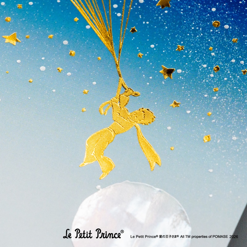 名作「星の王子さま」と箔押しブランド「ROKKAKU」がコラボレーション。きらきら輝く箔押しが、星の王子さまの世界を鮮やかに彩ります。輝きでいっぱいの星の王子さまの世界をお楽しみください。旅立ちの時から、旅での出会い、気づき。小さな王子さまの大冒険をテーマにした箔押しポストカードです。