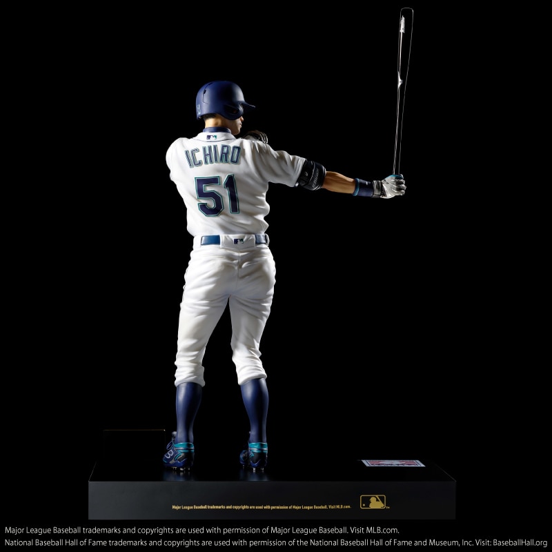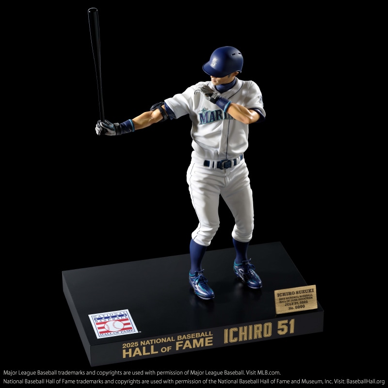 「イチロー51」 その名は、MLBの歴史においても特別な響きを持つ。2001年、デビュー戦での衝撃から始まり、10年連続200本安打、シーズン最多安打262本、ゴールドグラブ10回。走攻守すべてにおいて完璧を追い求めた男が、ついにアメリカ野球殿堂入り! その偉業を称え、イチローのリアルパーフェクトフィギュアが登場。各メーカーの全面協力により、バット、バッティンググローブ、エルボーガード、スパイク、リストバンド。すべてのアイテムを実物と同一の仕様・デザインで再現。細部まで緻密に再現された立ち姿。筋肉の張り、背中のライン、集中した眼差しそのすべてを極限まで追求。ファンの記憶に刻まれたイチローの美しい構え、この完成度、このこだわり。まさに、世界に一つの「真のイチロー・フィギュア」です。MLB通算安打数と同じ<3089体限定>。すべてシリアルナンバー入り。専用台座はアメリカ野球殿堂博物館の公式ロゴを印刷した特別仕様。ファンの心に刻まれたあの一瞬を呼び起こします。歴史と誇りを手にできる、ただ一つのフィギュアを是非あなたのお手元に。