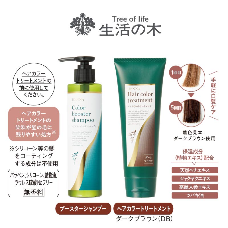 〈生活の木〉ヘアカラーブースターシャンプー&ヘアカラートリートメント ダークブラウン