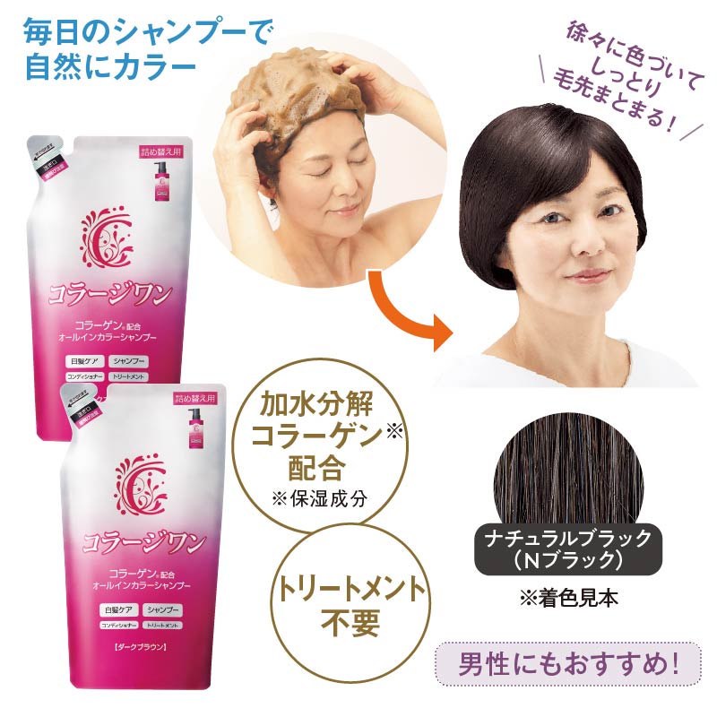 〈コラージワン〉オールインカラーシャンプー 詰替用2個組 ナチュラルブラック