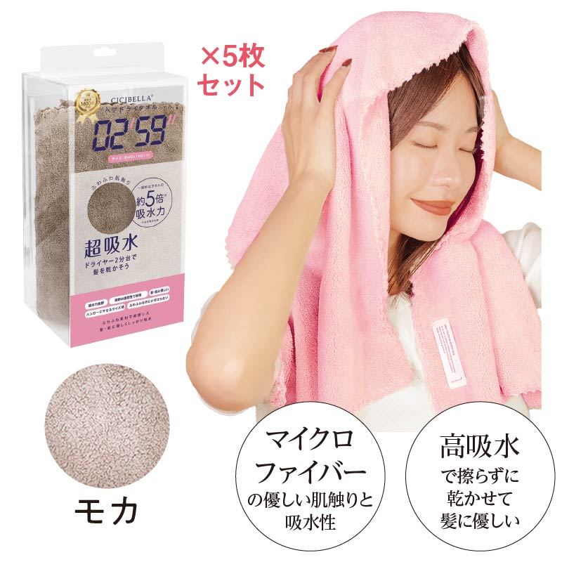 〈シシベラ〉ヘアドライタオル 5枚セット モカ
