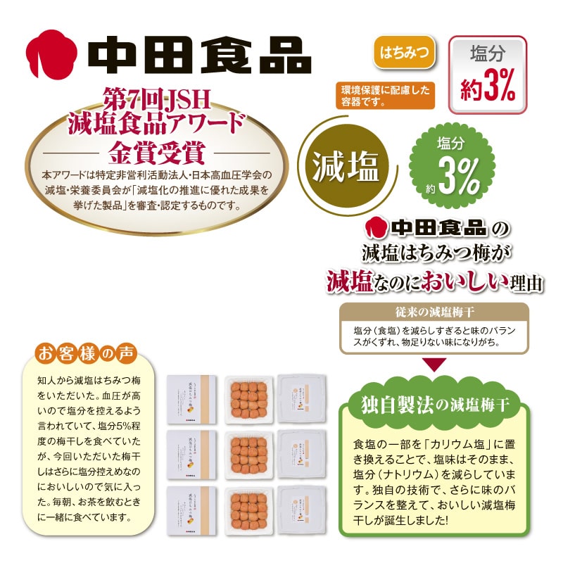 中田食品 紀州の完熟南高梅 減塩はちみつ梅3箱