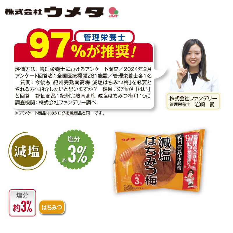 ウメタ 紀州南高梅減塩約3%はちみつ梅干個包装30粒
