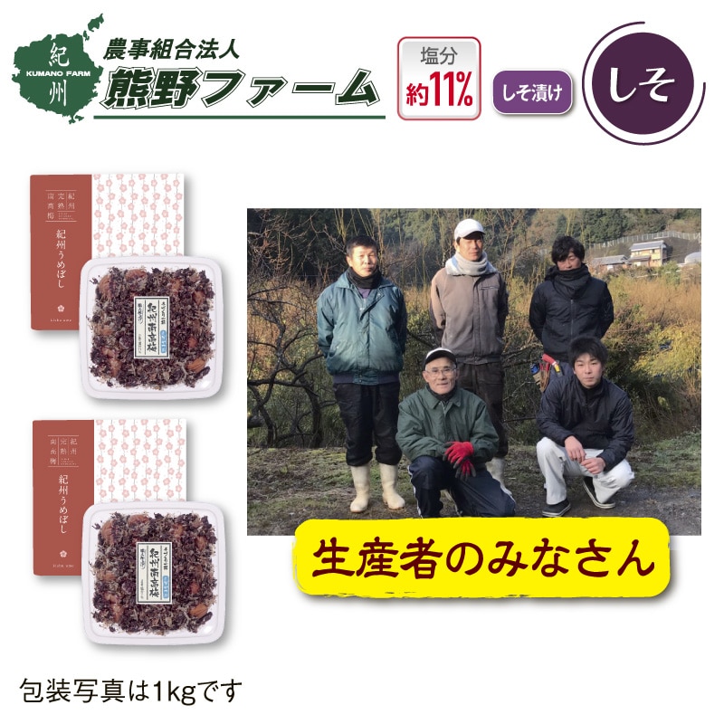 熊野ファーム 紀州南高梅「しそかつお」梅干1kg2箱