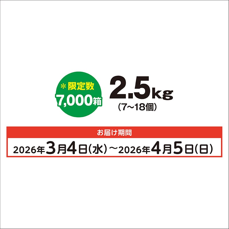 ※掲載商品は青果物ですので、天候、作柄状況により、商品のお届けが前後する場合がございます。また、限定数到達前に販売を終了させていただく場合があります。あらかじめご了承ください。