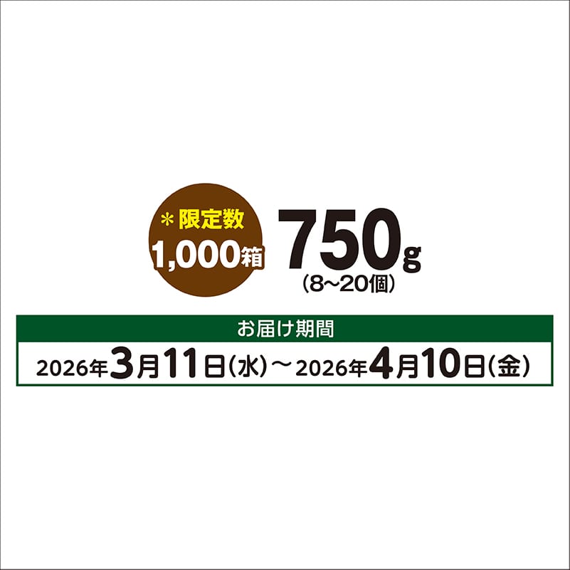 ※掲載商品は青果物ですので、天候、作柄状況により、商品のお届けが前後する場合がございます。また、限定数到達前に販売を終了させていただく場合があります。あらかじめご了承ください。