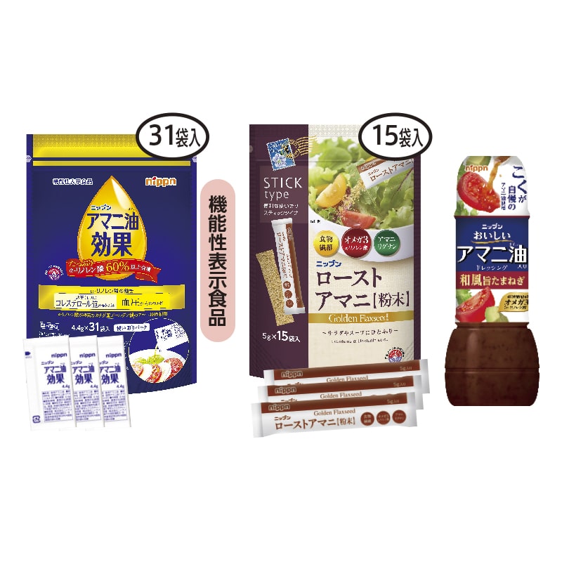 ●原料原産地/あまに:アマニ油効果・アマニ油入りドレッシング=カナダ産・ローストアマニ粉末=ニュージーランド産