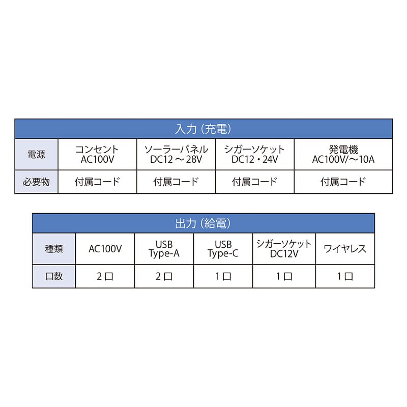 ●付属品/AC充電ケーブル、シガープラグアダプター、ソーラー充電ケーブル 出力/AC100V×2 USB−C×1 USB−A×2 シガープラグDC12V×1 ワイヤレス×1 充電容量約504Wh[3モード(高速・標準・静音)充電] 6年間保証書(本体最大、付属品は1年間)付。