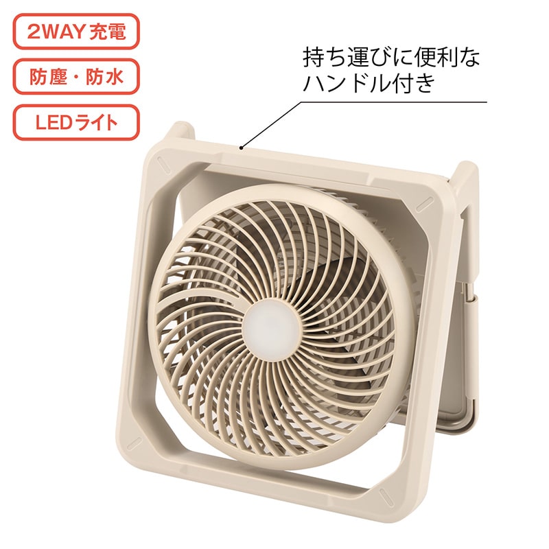 ●専用USBケーブル付。出力/USB−C×1 充電時間(約)/USB:4〜5時間 太陽光:10〜14時間 連続使用時間(約)/扇風機:最大21時間 LEDライト:最大67時間 風量・LEDライト調節(弱・中・強の3段階)。オフタイマー(2・4・6時間の3段階)付。 1年間保証書付。