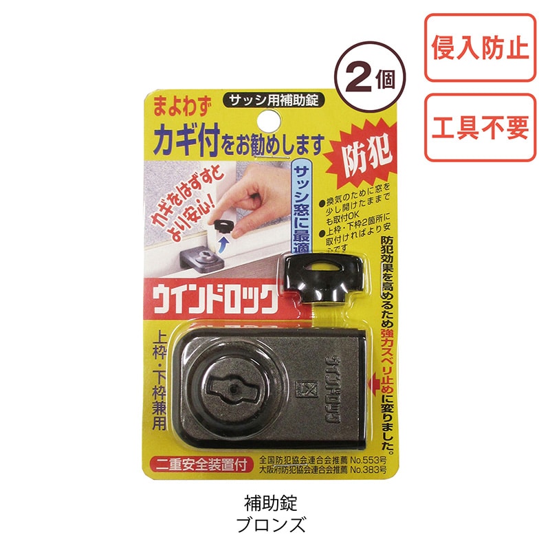 ウインドロック サッシ用補助錠2個セット(ブロンズ)
