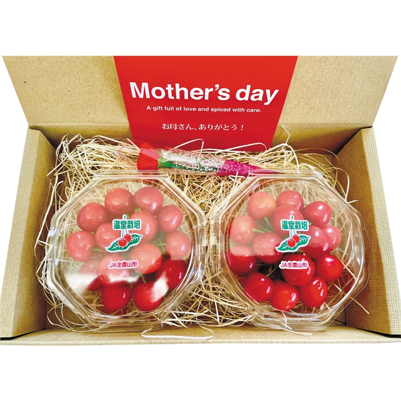 旬の時期よりも一足早く、ハウスで栽培された佐藤錦を産地直送します。母の日の贈り物に好適です。