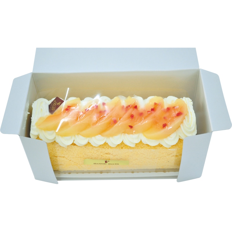 数々の受賞歴をもつパティシエ「小松龍侍」が美味しいスイーツをお届けします。 しっとりと焼き上げたスポンジの上に生クリームと桃のコンポートを敷き詰めました。
