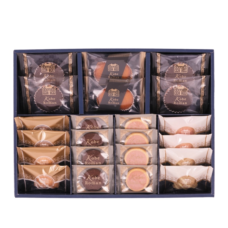 パイ職人「神戸浪漫」よりお届けする、お菓子の詰合せ。 それぞれ違った風味が楽しめる4種類のパイは見た目もカラフル。しっとりとしたフィナンシェやブラウニー、サクッと軽いクッキーなど、どれもおすすめのお菓子です。