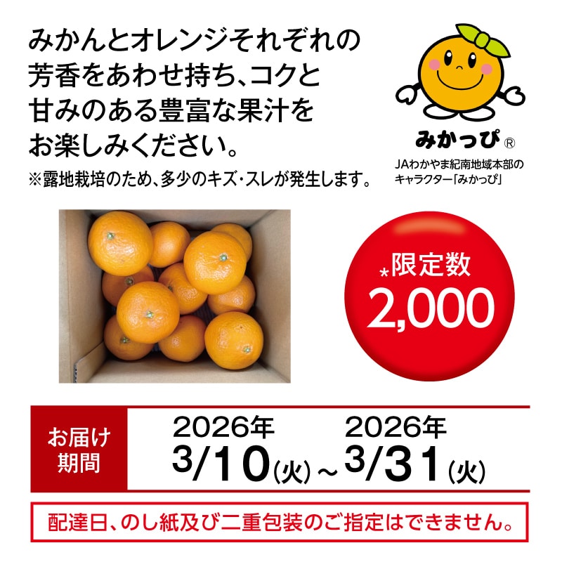 ※掲載商品は青果物ですので、天候、作柄状況により、商品のお届けが前後する場合がございます。また、限定数到達前に販売を終了させていただく場合があります。あらかじめご了承ください。