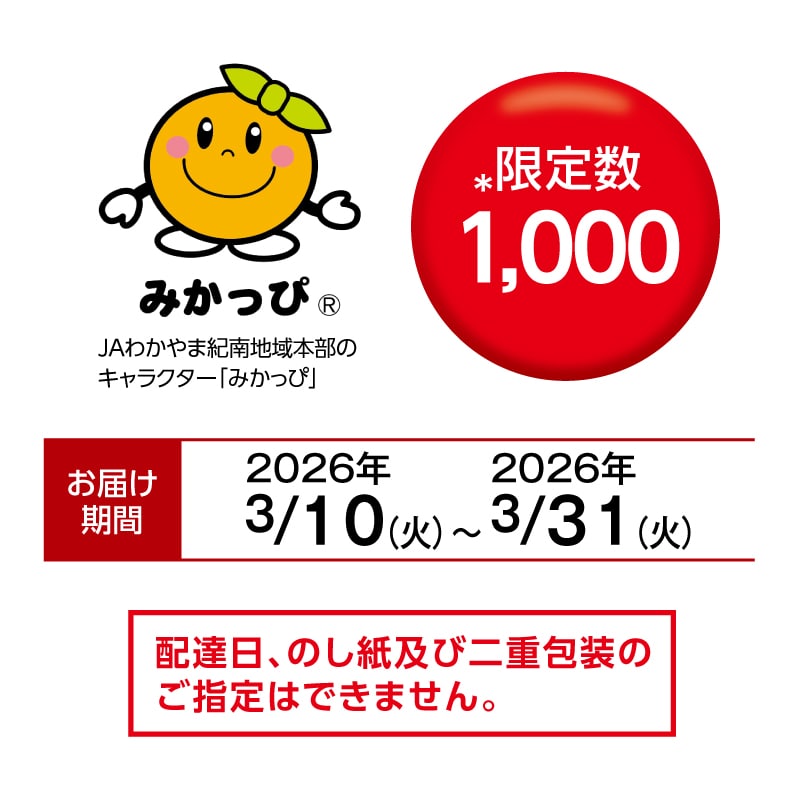 ※掲載商品は青果物ですので、天候、作柄状況により、商品のお届けが前後する場合がございます。また、限定数到達前に販売を終了させていただく場合があります。あらかじめご了承ください。