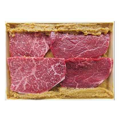 酒処山形の老舗酒蔵から出る酒粕を配合した特製味噌に山形牛を丁寧に漬込んだ味噌漬をご賞味ください。