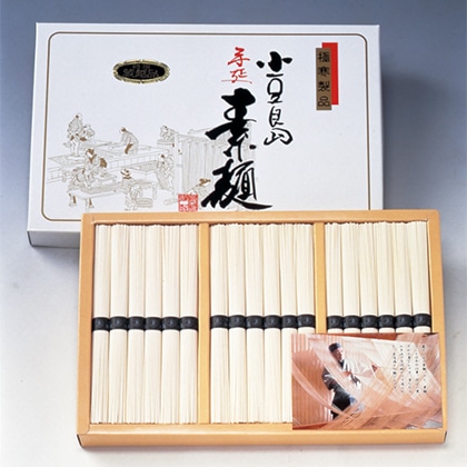 国家資格を持つ製麺技能士が手延べ技法にてつくった素麺を、蔵の中でねかせたコシの強い蔵越品です。ご贈答にも好適です。