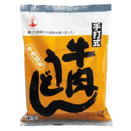 手打式製法によるソフトなもちもち麺。甘辛牛肉レトルトとスープです。