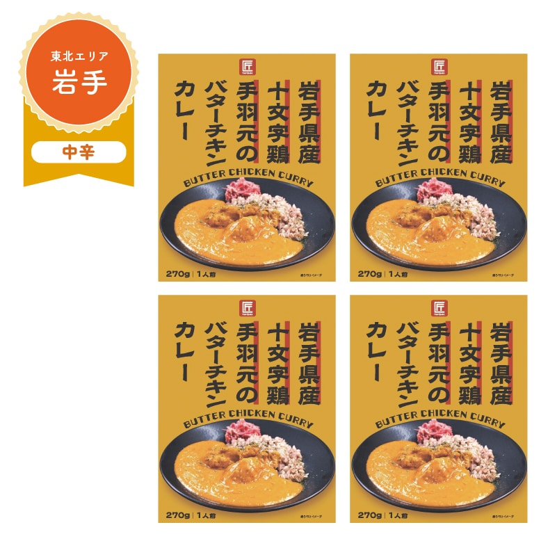 岩手県産十文字鶏手羽元のバターチキンカレー B(4食)