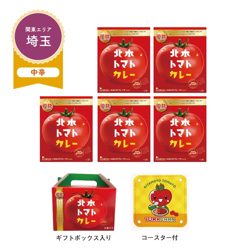 2016年・2023年土浦C-1グランプリ優勝をはじめ、数々のカレーグランプリで優勝に輝いた埼玉県北本市が誇るご当地カレー。温めるだけで日本一と評された味をお楽しみいただけます。北本トマトイメージキャラクター「とまちゃん」のコースター付です。