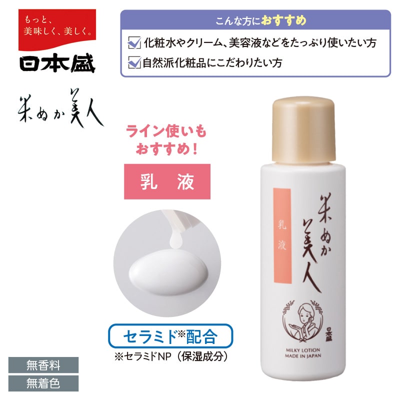 のびがよく肌へのなじみがよい柔らかいテクスチャーの乳液。セラミドNPなど保湿成分を配合。