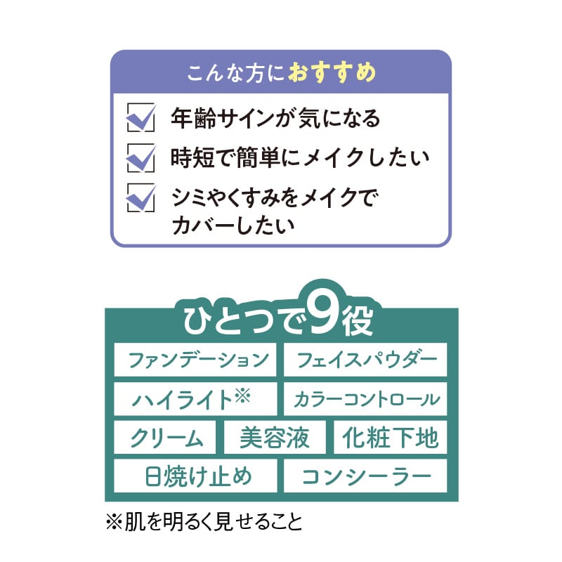 時短メイクで美しく輝く肌へ!ポンポンするだけで気になるシミも厚塗りにならずしっかりカバー。シミやくすみをメイクでカバーしたい方に。