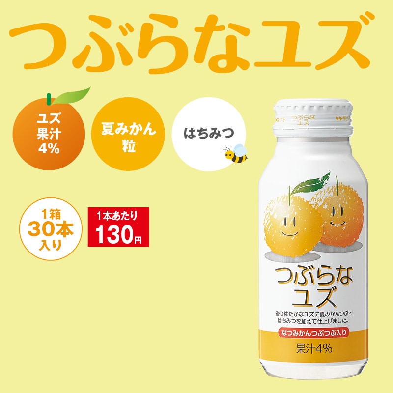 ユズをキュッと搾ったような癒される香りが引き立つドリンクです。国産ユズを使用し、優しい酸味とほどよい甘さが爽やかな飲み心地の商品です。