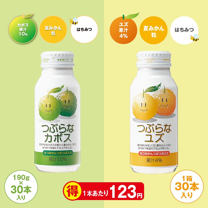 ●商品内容/つぶらなカボス・つぶらなユズ 各190g×30